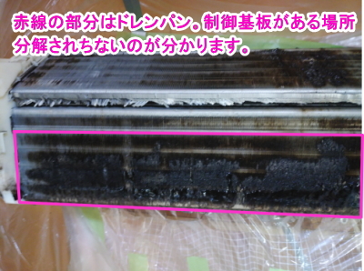 料金の安いクリーニング業者2社に年ごとに依頼したそうですが、2か月も経たない内に冷えが悪くなり、販売店に見てもらうとエアコン内部の汚れが原因とちゃんと分解する業者にクリーニングされるようアドバイスを頂いてのご依頼です。