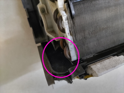 昨年、テレビCMに出ている料金が安い業者に依頼したそうですが、水漏れは直らず再クリーニングしたそうですが、それでも水漏れは直らずずっと水漏れはしてたそうでお客様自身でドレンパンの汚れを少し取ると良くなったようですが、風量不足で知人のサービスマンに相談されたそうで専門的なクリーニングが必要と紹介されました。
