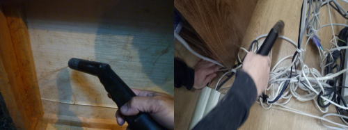 移動した棚・机の裏側の壁やパソコンの配線の中はホコリ除去
